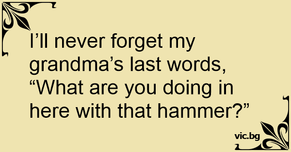 I’ll never forget my grandma’s last words, “What are you doing in here with that hammer?”
