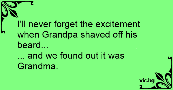 I'll never forget the excitement when Grandpa shaved off his beard...<br />... and we found out it was Grandma.
