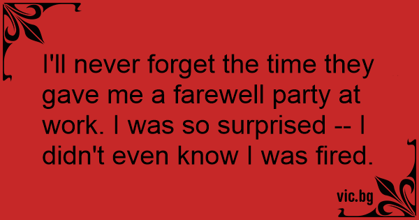 I'll never forget the time they gave me a farewell party at work. I was so surprised -- I didn't even know I was fired.