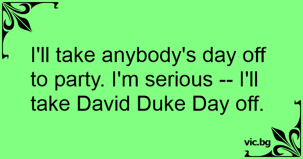 I'll take anybody's day off to party. I'm serious -- I'll take David Duke Day off.