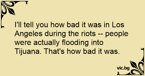 I'll tell you how bad it was in Los Angeles during the riots -- people were actually flooding into Tijuana. That's how bad it was.