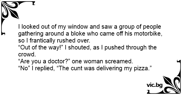 “No” I replied, “The сunт was delivering my pizza.”