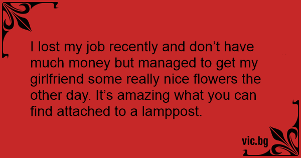 I lost my job recently and don’t have much money but managed to get my girlfriend some really nice flowers the other day. It’s amazing what you can find attached to a lamppost.
