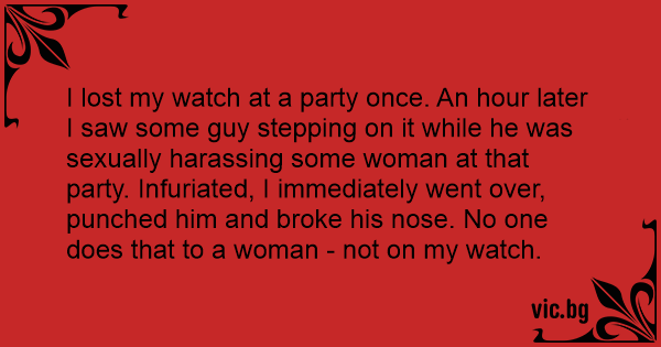 I lost my watch at a party once. An hour later I saw some guy stepping on it while he was sexually harassing some woman at that party. Infuriated, I immediately went over, punched him and broke his nose. No one does that to a woman - not on my watch.