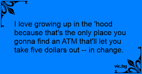 I love growing up in the 'hood because that's the only place you gonna find an ATM that'll let you take five dollars out -- in change.