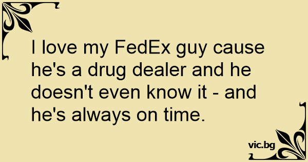I love my FedEx guy cause he's a drug dealer and he doesn't even know it - and he's always on time.