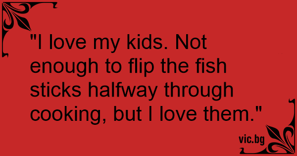"I love my kids. Not enough to flip the fish sticks halfway through cooking, but I love them."