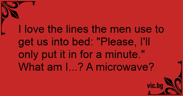 I love the lines the men use to get us into bed: "Please, I'll only put it in for a minute."