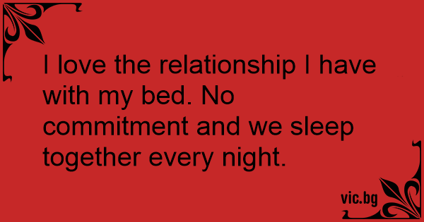 I love the relationship I have with my bed. No commitment and we sleep together every night.