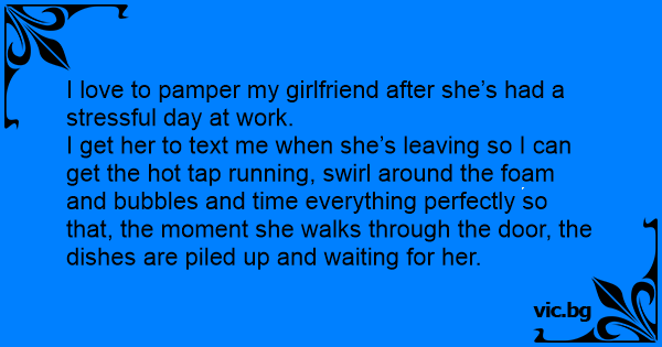 I love to pamper my girlfriend after she’s had a stressful day at work.