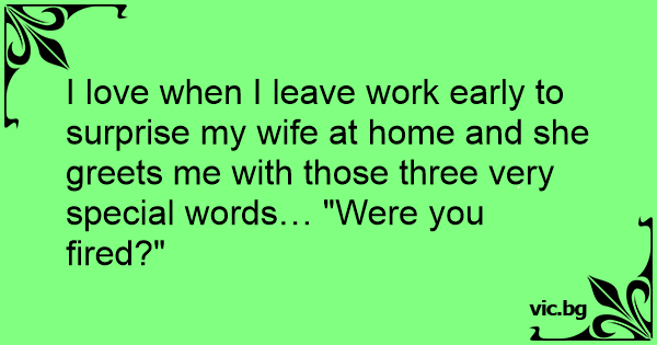 I love when I leave work early to surprise my wife at home and she greets me with those three very special words… "Were you fired?"