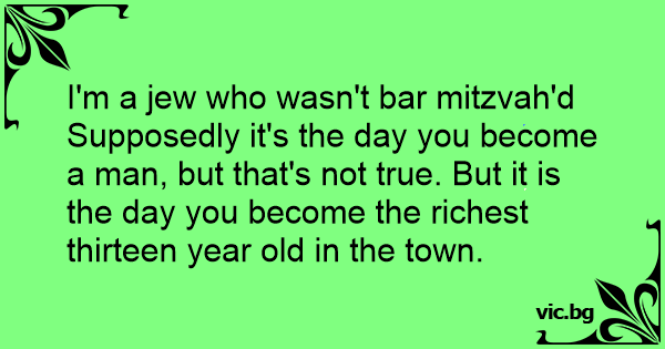 Supposedly it's the day you become a man, but that's not true. But it is the day you become the richest thirteen year old in the town.