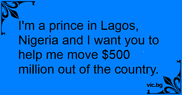 I'm a prince in Lagos, Nigeria and I want you to help me move $500 million out of the country.