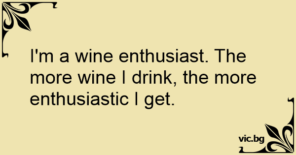 I'm a wine enthusiast. The more wine I drink, the more enthusiastic I get.