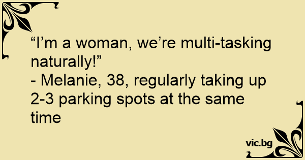 - Melanie, 38, regularly taking up 2-3 parking spots at the same time