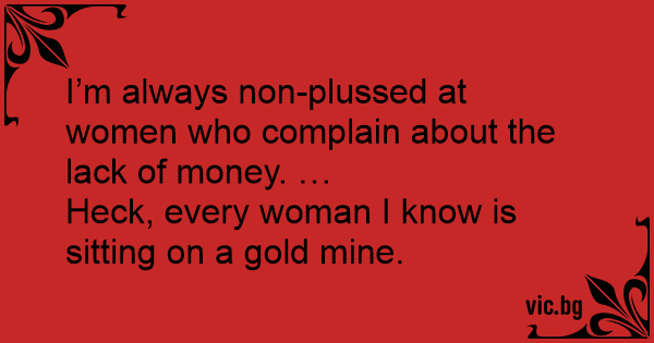 I’m always non-plussed at women who complain about the lack of money. …