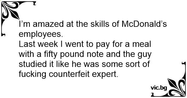 Last week I went to pay for a meal with a fifty pound note and the guy studied it like he was some sort of fuскing counterfeit expert.