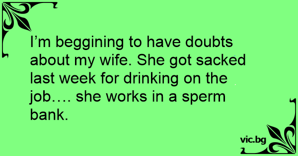 I’m beggining to have doubts about my wife. She got sacked last week for drinking on the job…. she works in a sреrм bank.