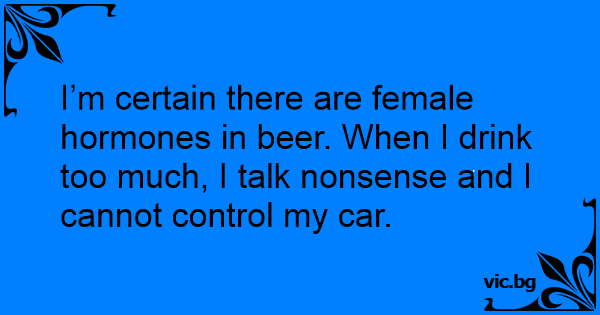 I’m certain there are female hormones in вееr. When I drink too much, I talk nonsense and I cannot control my car.