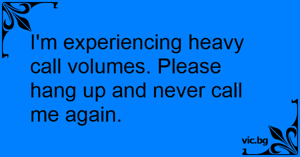 I'm experiencing heavy call volumes. Please hang up and never call me again.