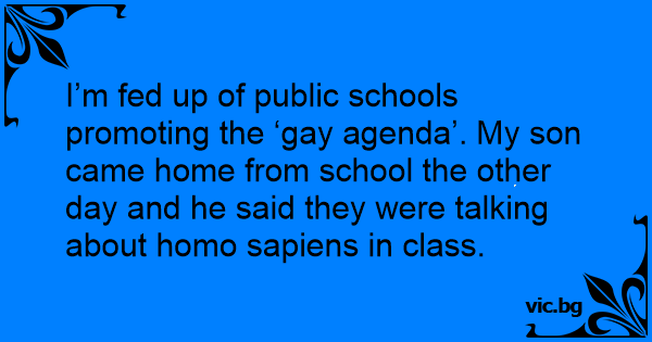 I’m fed up of public schools promoting the ‘gаy agenda’. My son came home from school the other day and he said they were talking about hомо sapiens in class.