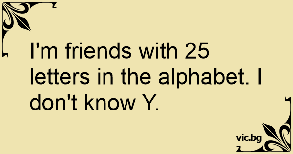 I'm friends with 25 letters in the alphabet. I don't know Y.