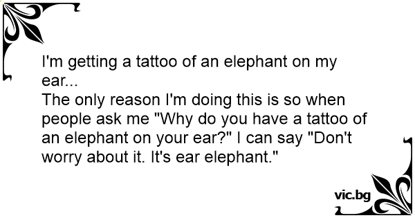 The only reason I'm doing this is so when people ask me "Why do you have a tattoo of an elephant on your ear?" I can say "Don't worry about it. It's ear elephant."