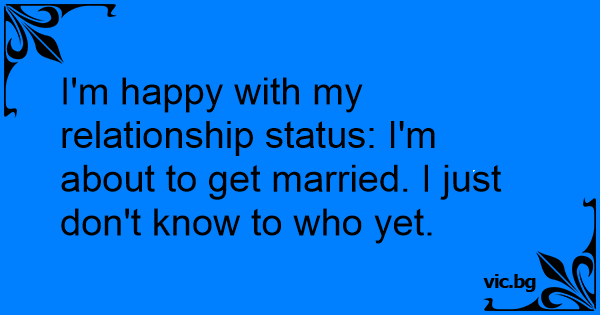 I'm happy with my relationship status: I'm about to get married. I just don't know to who yet.