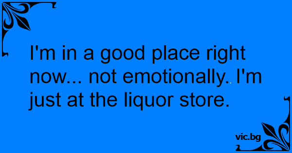 I'm in a good place right now... not emotionally. I'm just at the liquor store.