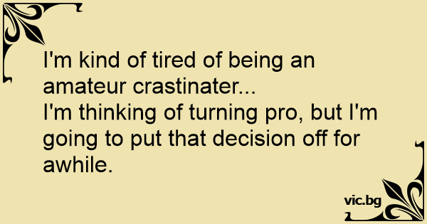 I'm kind of tired of being an amateur crastinater...