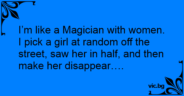 I pick a girl at random off the street, saw her in half, and then make her disappear….