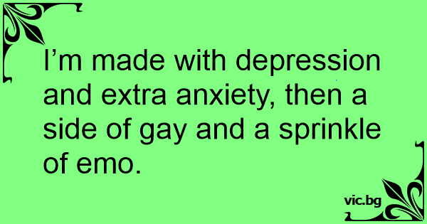 I’m made with depression and extra anxiety, then a side of gаy and a sprinkle of emo.