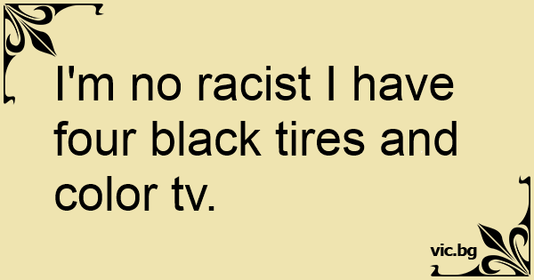 I'm no racist I have four black tires and color tv.