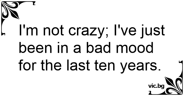 I'm not crazy; I've just been in a bad mood for the last ten years.