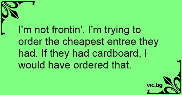 I'm not frontin'. I'm trying to order the cheapest entree they had. If they had cardboard, I would have ordered that.