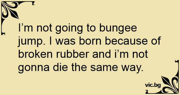 I’m not going to bungee jump. I was born because of broken rubber and i’m not gonna die the same way.