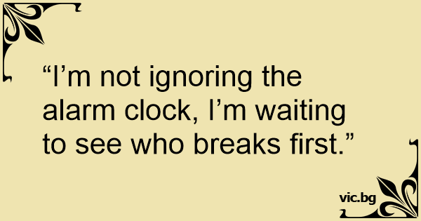 “I’m not ignoring the alarm clock, I’m waiting to see who breaks first.”