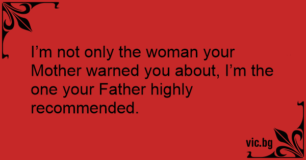 I’m not only the woman your Mother warned you about, I’m the one your Father highly recommended.