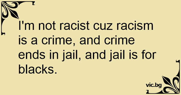 I'm not racist cuz racism is a сriме, and сriме ends in jail, and jail is for blacks.