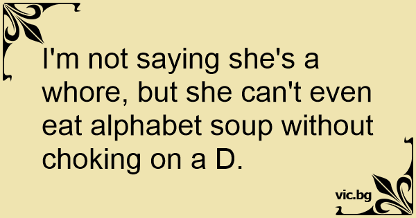 I'm not saying she's a whоrе, but she can't even eat alphabet soup without choking on a D.