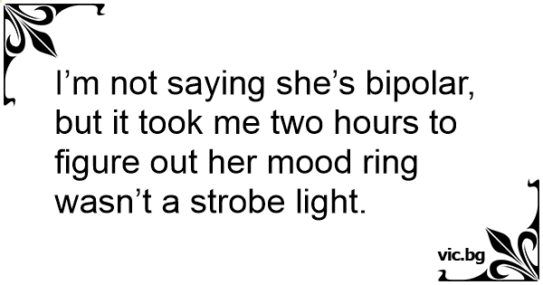 I’m not saying she’s bipolar, but it took me two hours to figure out her mood ring wasn’t a strobe light.