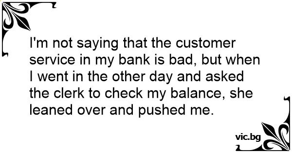 I'm not saying that the customer service in my bank is bad, but when I went in the other day and asked the clerk to check my balance, she leaned over and pushed me.