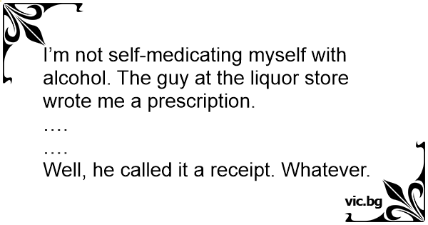I’m not self-medicating myself with alcohol. The guy at the liquor store wrote me a prescription.