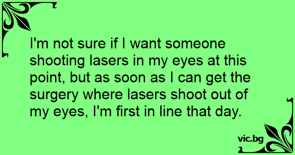 I'm not sure if I want someone shooting lasers in my eyes at this point, but as soon as I can get the surgery where lasers shoot out of my eyes, I'm first in line that day.