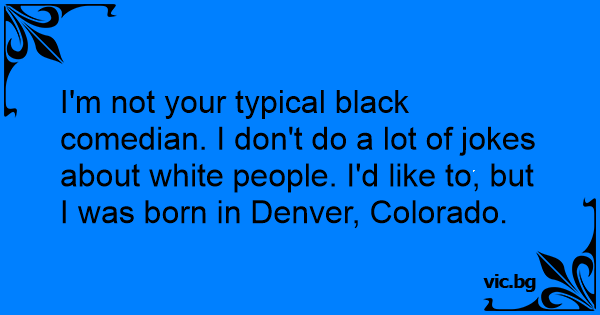 I'm not your typical black comedian. I don't do a lot of jokes about white people. I'd like to, but I was born in Denver, Colorado.