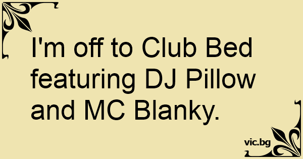 I'm off to Club Bed featuring DJ Pillow and MC Blanky.