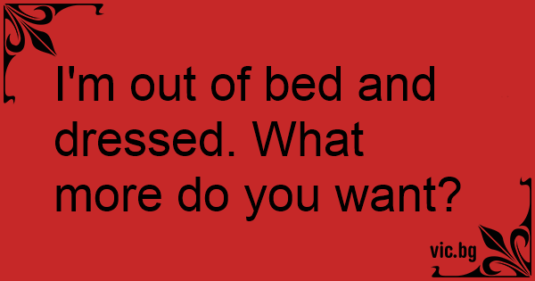 I'm out of bed and dressed. What more do you want?