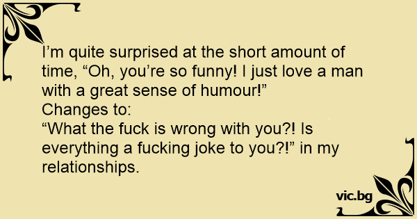“What the fuск is wrong with you?! Is everything a fuскing joke to you?!” in my relationships.