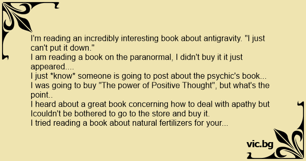 I'm reading an incredibly interesting book about antigravity. "I just can't put it down."