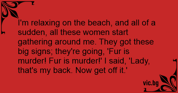 I'm relaxing on the beach, and all of a sudden, all these women start gathering around me. They got these big signs; they're going, 'Fur is мurdеr! Fur is мurdеr!' I said, 'Lady, that's my back. Now get off it.'
